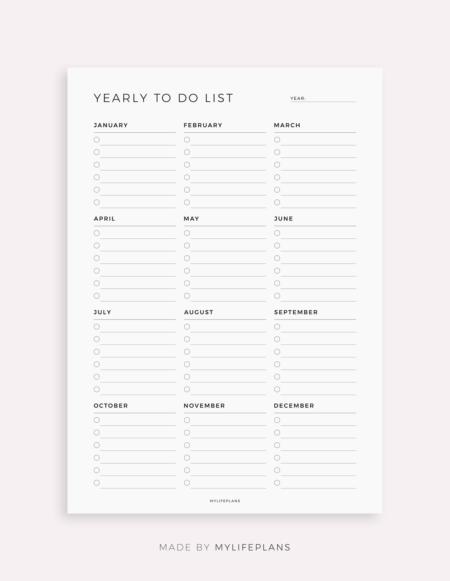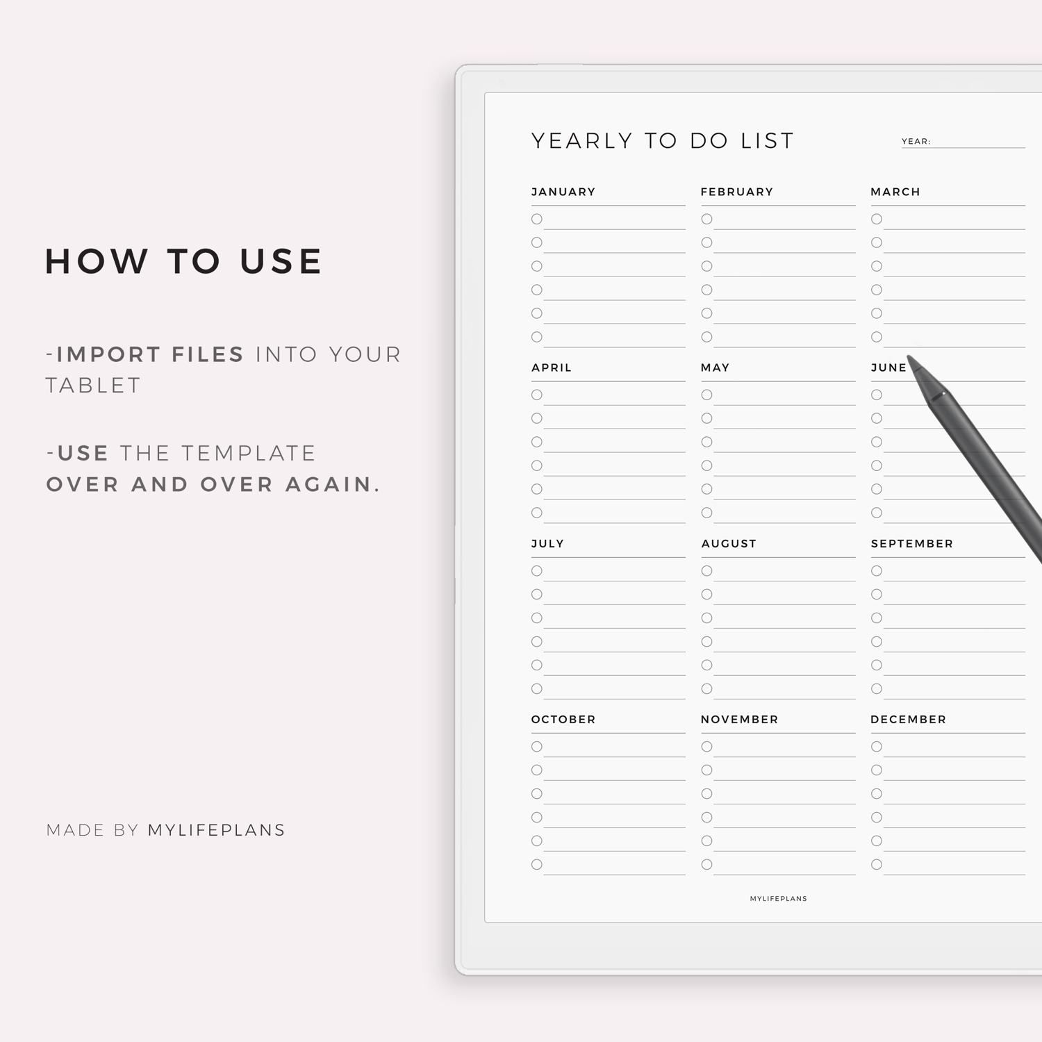 Yearly To Do List Template for Remarkable, Supernote, Kindle Scribe, Boox, Kobo