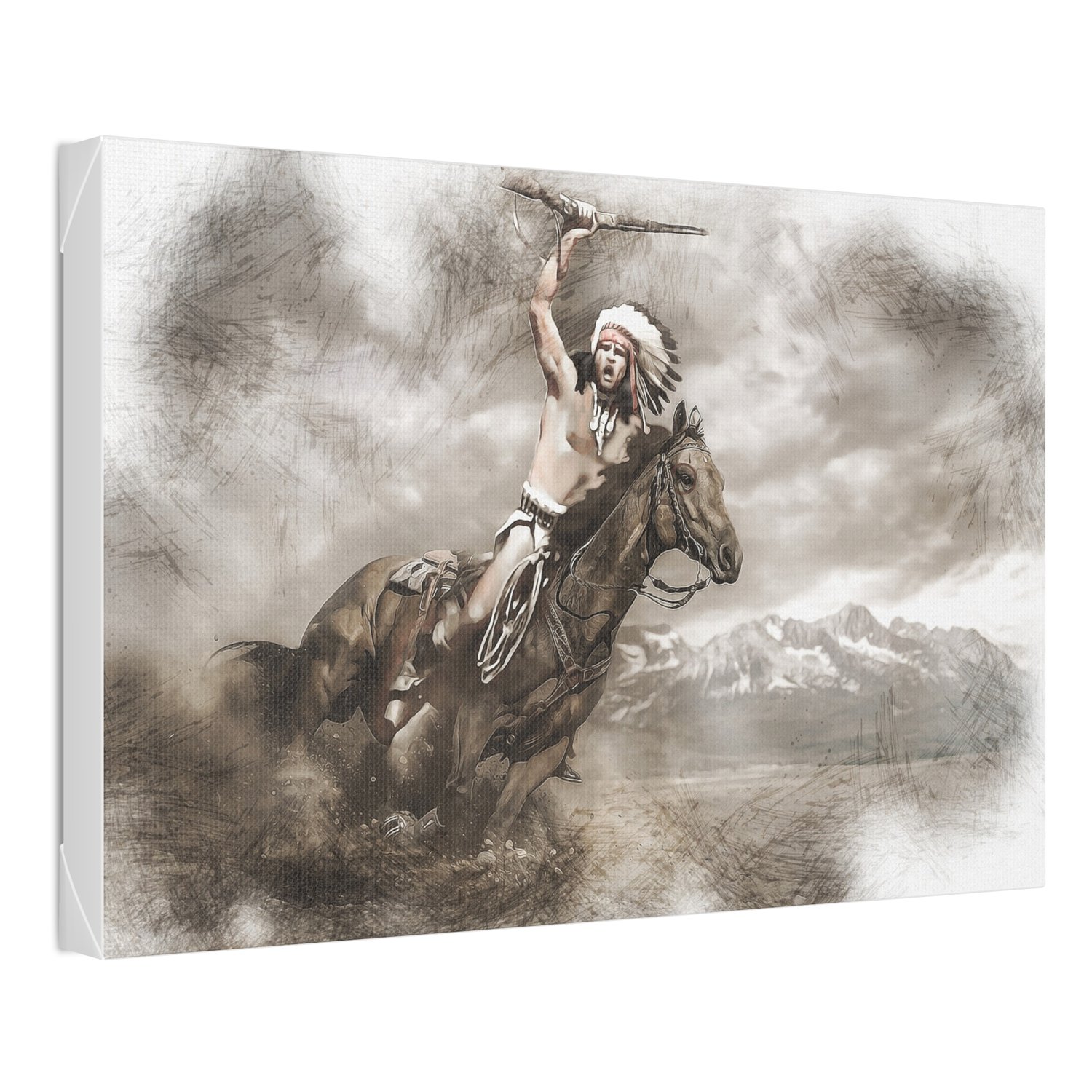 Stretched Canvas Digital Watercolor Native American