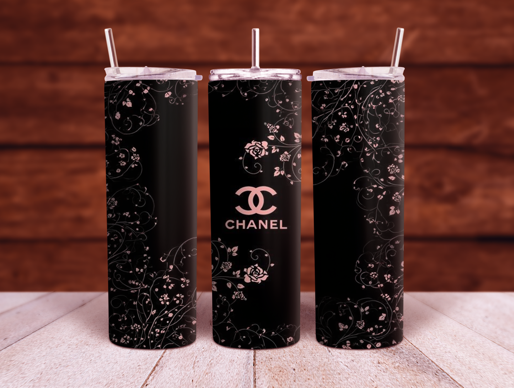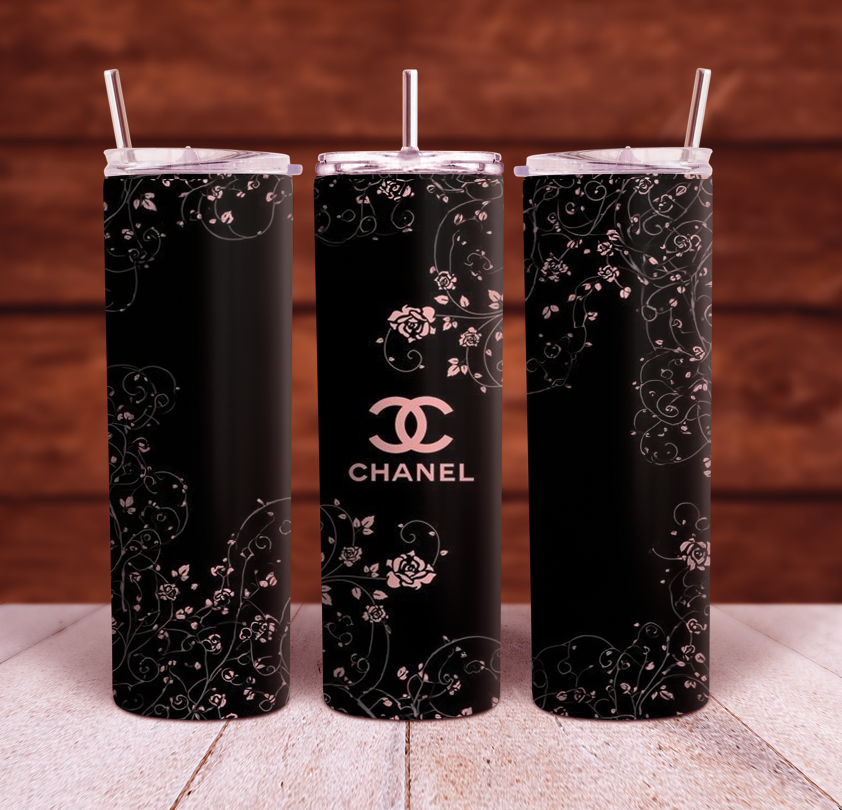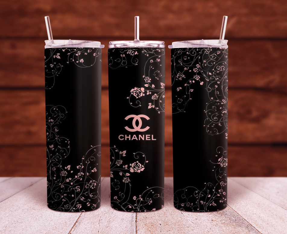 Black and Pink Floral -3 designs 20oz and 30oz Sublimation Tumbler Wrap PNG