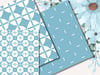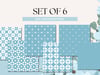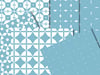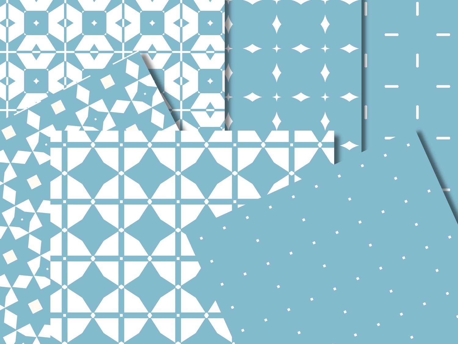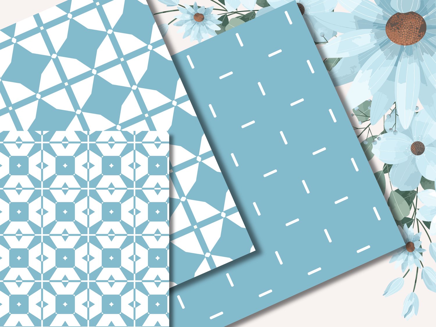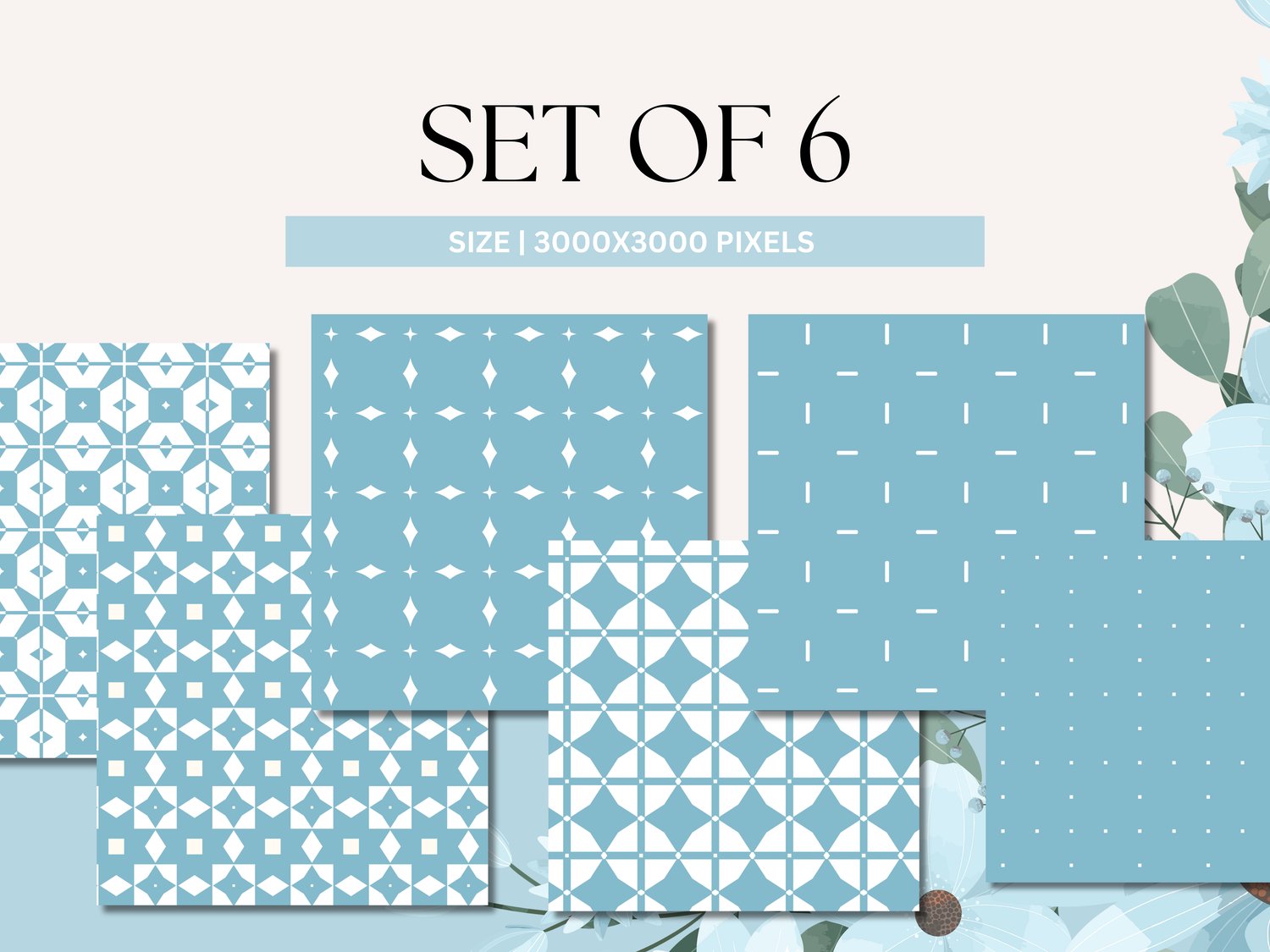 This set includes 6 high-quality geometric backgrounds, each designed with repeating shapes, subtle symmetry, and a fresh blue-and-white palette that works beautifully across a wide range of creative uses.