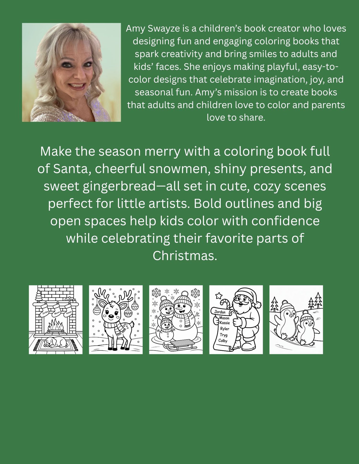 25 pages make the season merry with a coloring book full of Santa, cheerful snowmen, shiny presents, and sweet gingerbread—all set in cute, cozy scenes perfect for little artists.