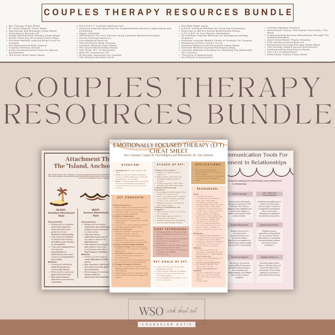 Unlock the potential for deeper connection and understanding with our Couples Therapy Resources Bundle, designed to nurture and strengthen your relationship. Whether you're new to therapy or seeking to enhance your journey together, this comprehensive digital download collection provides you with the tools you need for meaningful growth and healing.