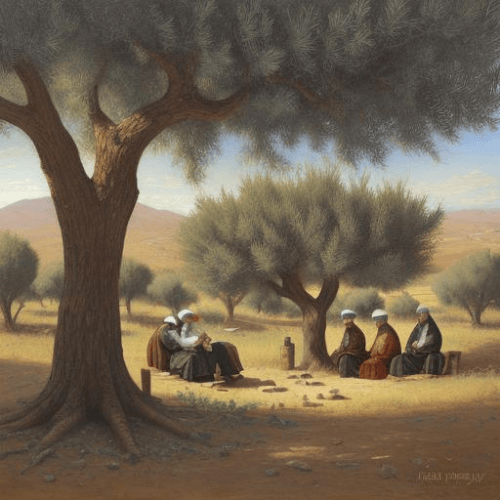 Jewish rabbis under Olive Tree