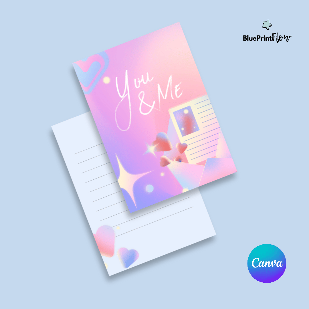 [FREE] Holographic Valentine's Day Post card Canva Template Design