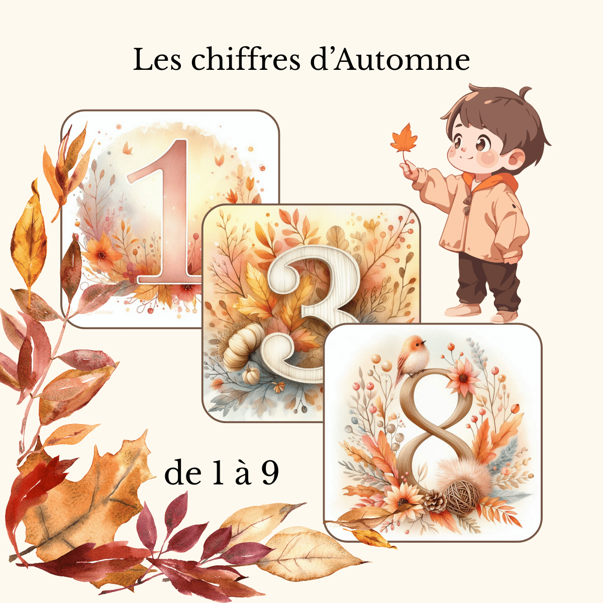 Apprendre les Chiffres de 1 à 9 – Thème Automne (PDF à Imprimer)