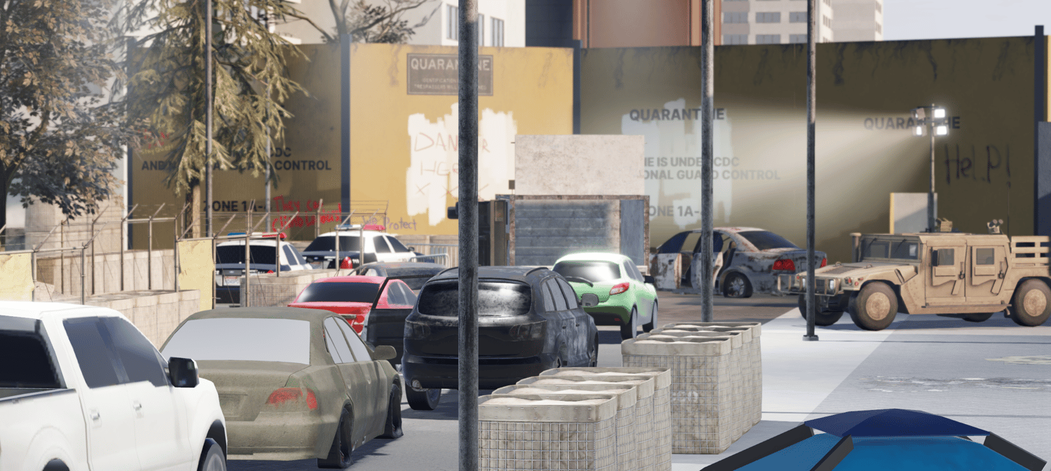 - CDC Quarantine Walls — Large-scale containment barriers surrounding and dividing the city, creating a true quarantine zone atmosphere.