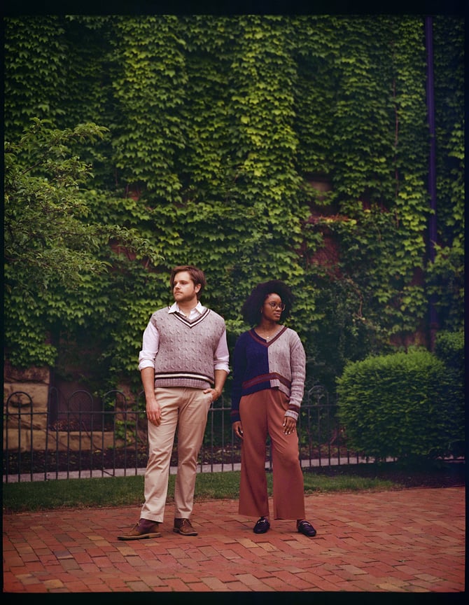 **Forty Love** is a modern spin on the classic tennis sweater. The garment is a set-in-sleeve pullover worked flat and in-pieces from the top-down in a plush cable rib pattern. Knitters can choose to make the garment using a simple intarsia split or make the main stitch pattern all in one color. Knitters can additionally choose to make full sleeves or keep it as a vest. Once established, the cable rib pattern and the optional intarsia split is not broken. This makes this garment a straightforward, but engaging knit.