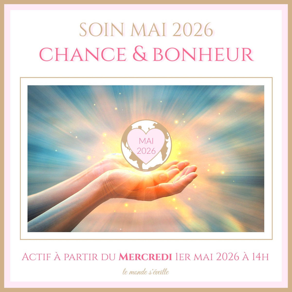 🍀 Le soin sera mis en place le Vendredi 1er Mai à 14h* (heure de Paris) et sera ACTIF pendant 8 jours, jusqu’au Vendredi 8 Mai à 20h*