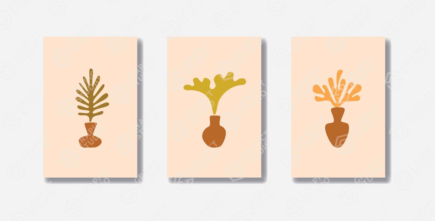 Set of 3 Vase and plant Illustration Matisse inspired illustration, suitable for cards or social media post. vase and plant shapes Matisse inspired suitable for art decoration, wall printing, or fabric print.