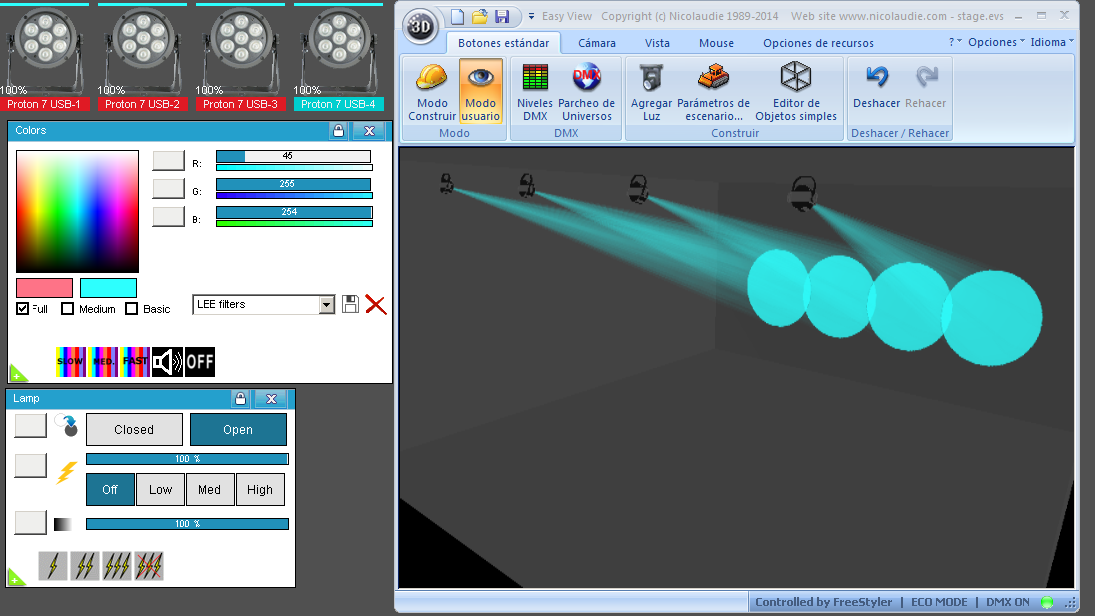 Esta Librería SSL2 está optimizada para trabajar con Magic 3d Easy View. Es decir para ver una representación 3D de las secuencias que estemos realizando con Freestyler, QLC+ o cualquier otro soft que se conecte con Magic 3d.
