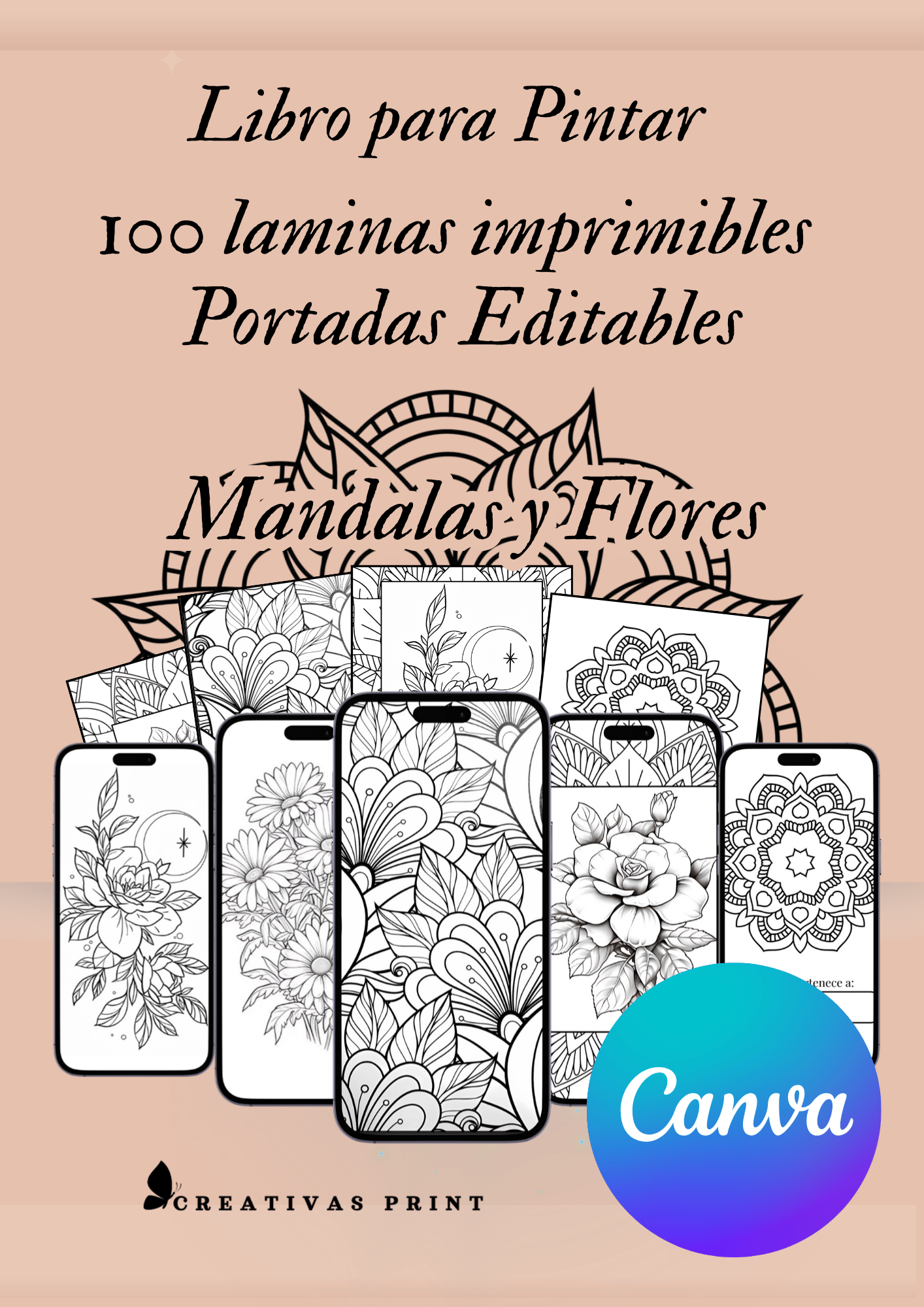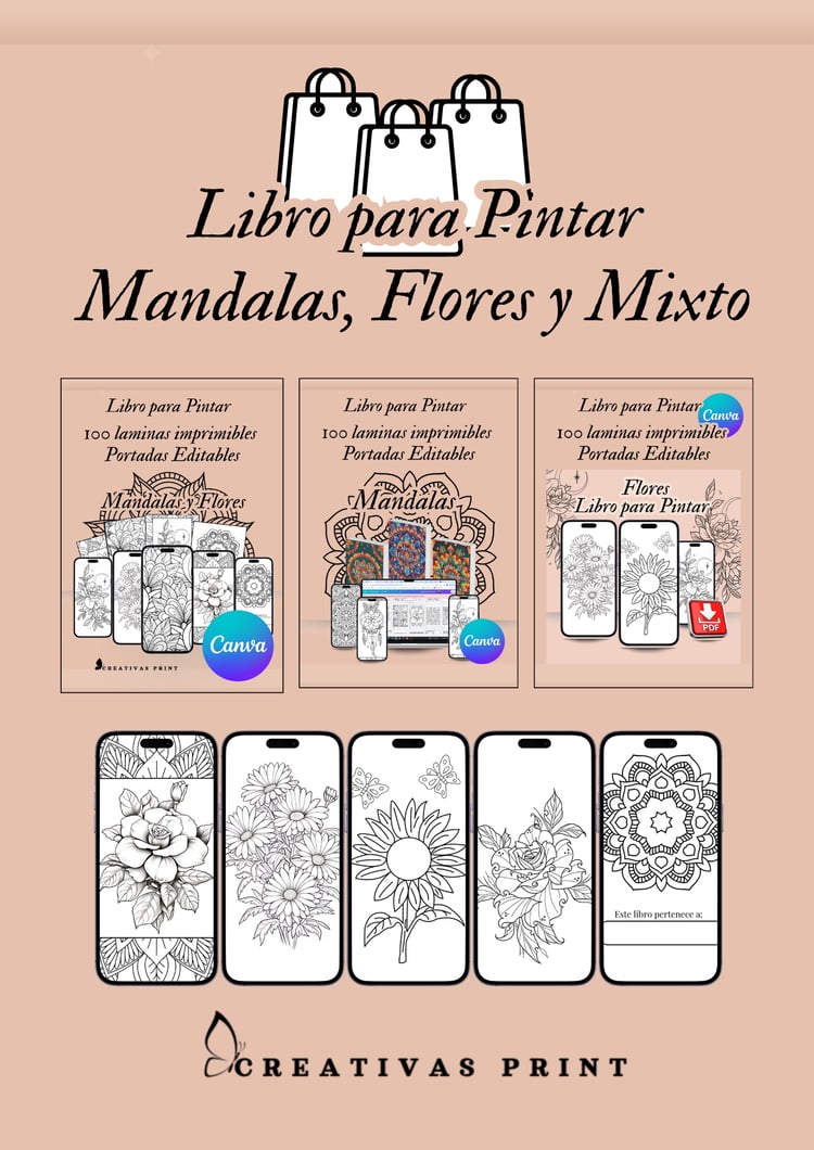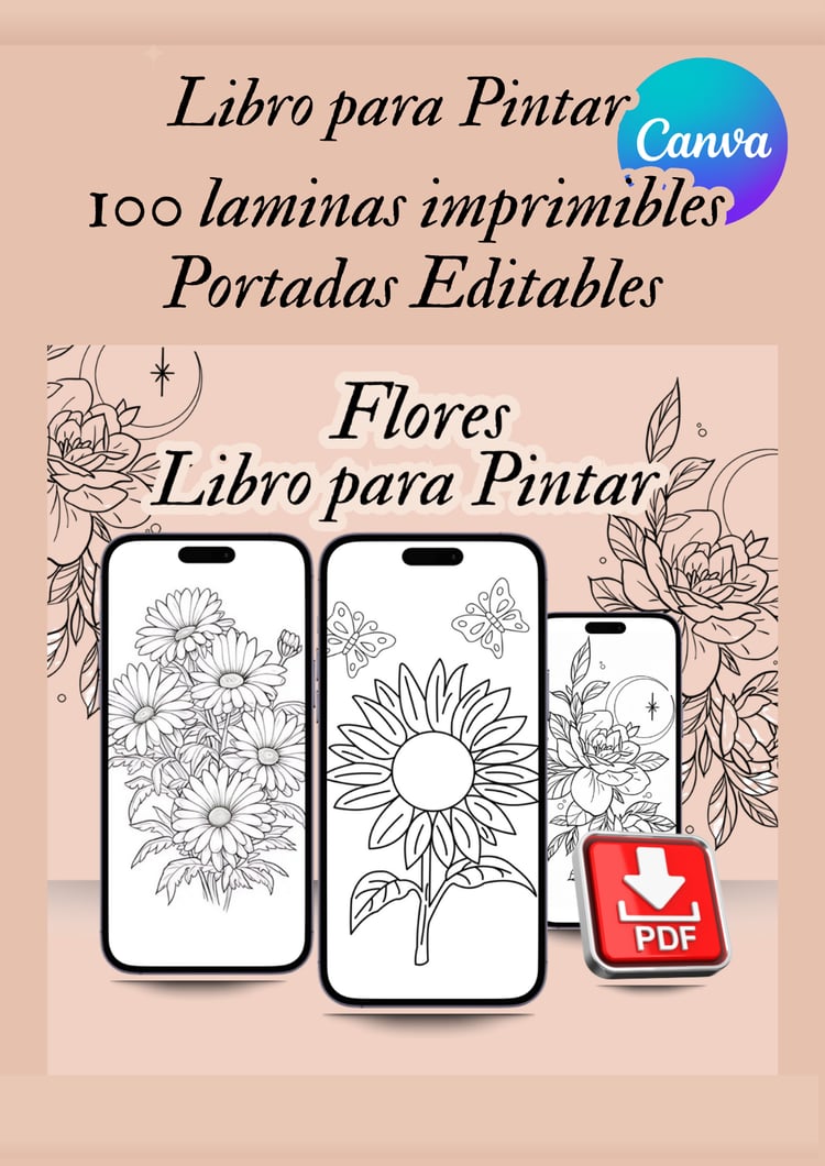Flores y Mandalas: Libro para Colorear editable en canva (100 laminas para colorear)