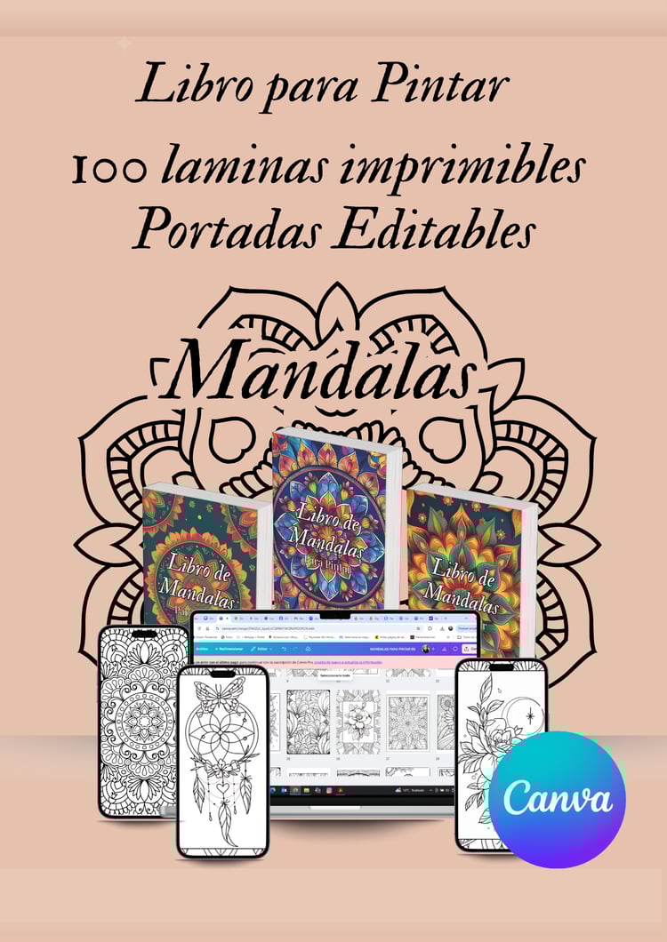 (100 Láminas Seleccionadas: Mandalas, Flores y Patrones + Portadas Editables)