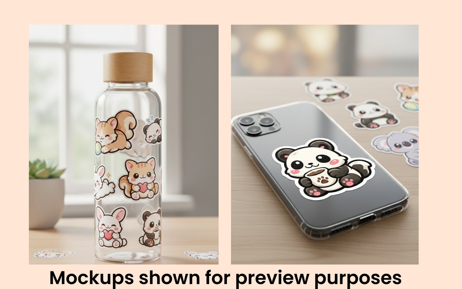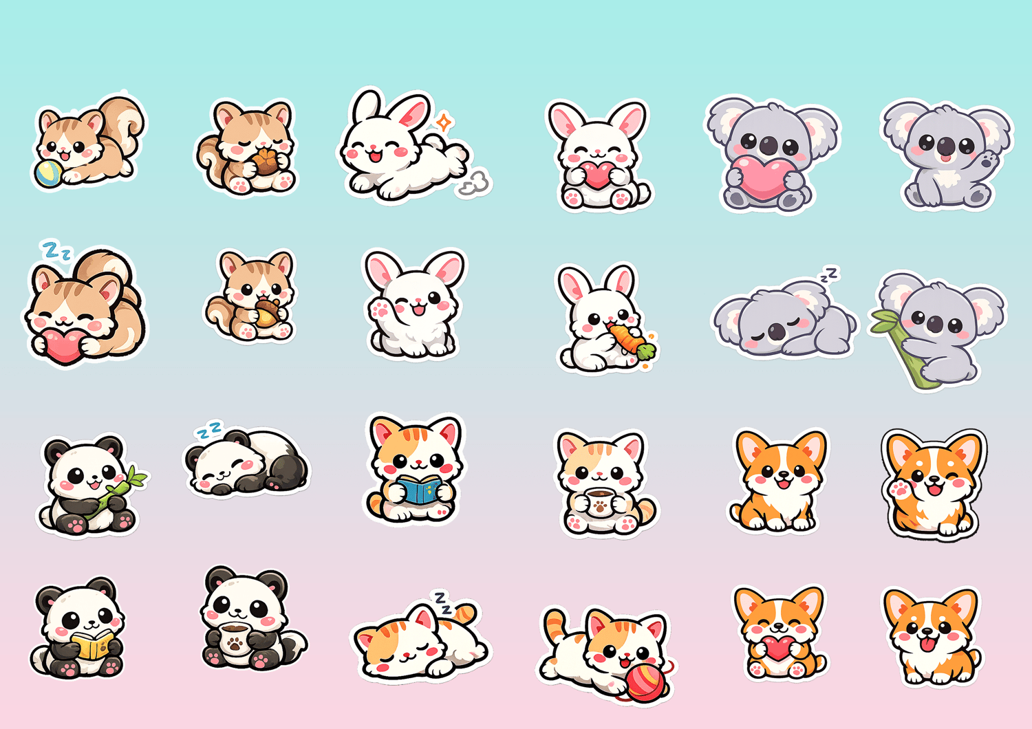 Meet the cutest animal squad ever! 💕 This adorable Kawaii Animal Sticker Bundle includes cats, dogs, bunny, panda, squirrel, and koala — all designed in a soft chibi style with round chubby bodies, shiny eyes, and sweet blush cheeks.