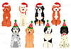 8 Doodle Dogs with Christmas Hats and Scarves Clipart Set