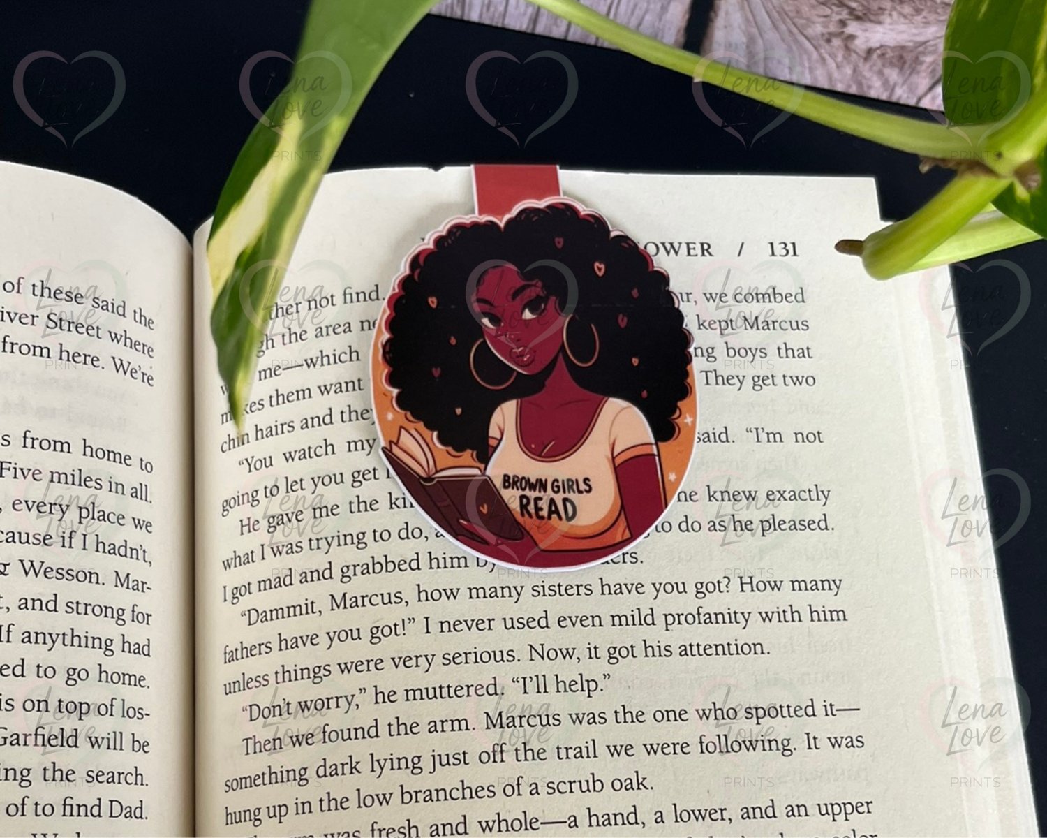 Celebrate brilliance, beauty, and culture every time you open your favorite book with this Brown Girls Read Magnetic Bookmark. Featuring vibrant Afrocentric artwork of a confident Black woman lost in her story, this design honors the power of representation and the joy of seeing ourselves reflected in every chapter.