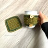 The Northwest Coffee Sleeve is a lovely and quick-to-work-up cup cozy. You can customize this mug accessory with different yarn color combinations and your favorite buttons!