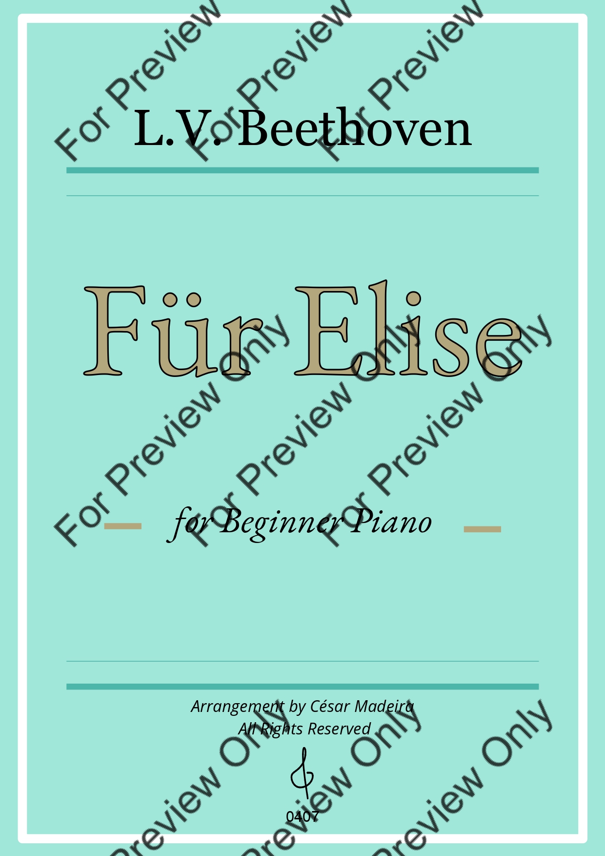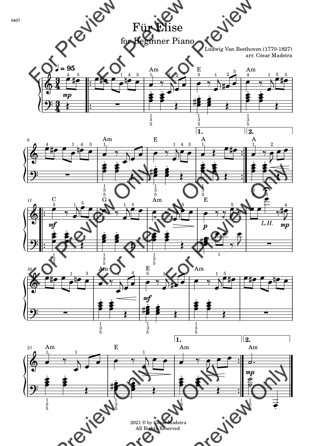Fur Elise by Ludwig Van Beethoven. Arrangement for Beginner/Easy Piano. With Full Score. Have fun!