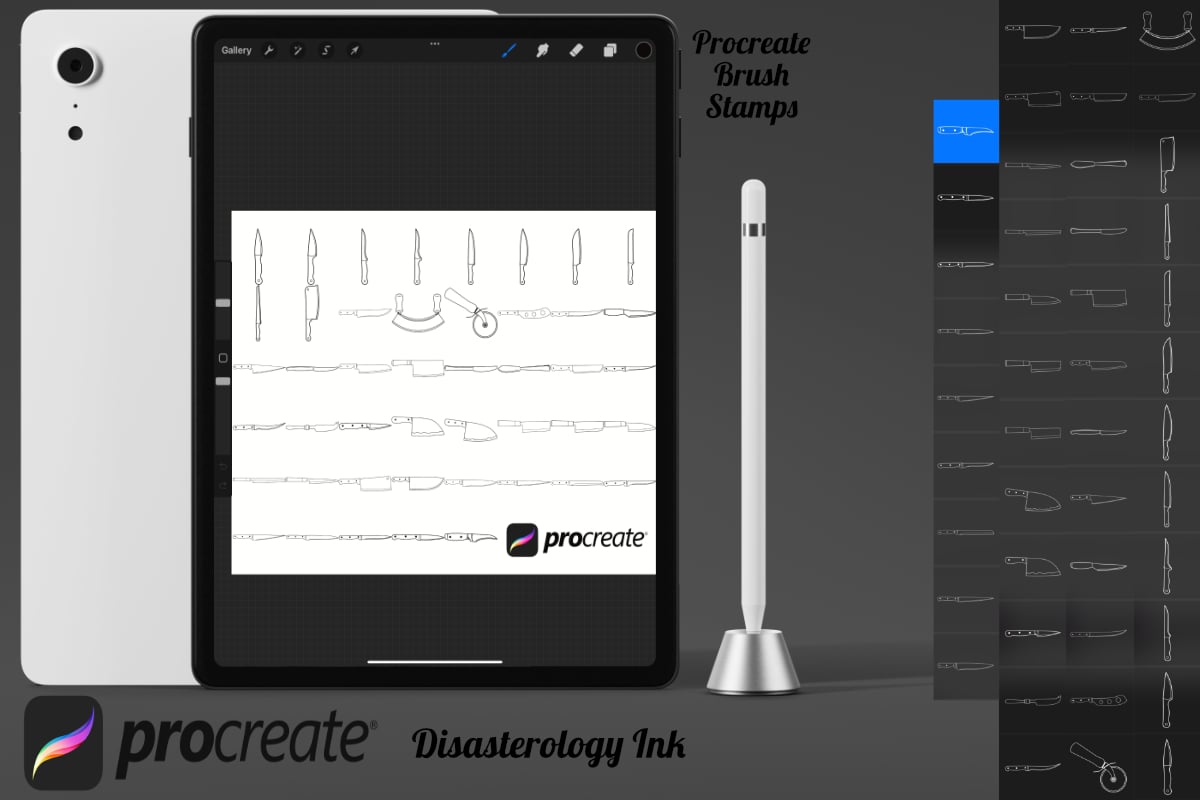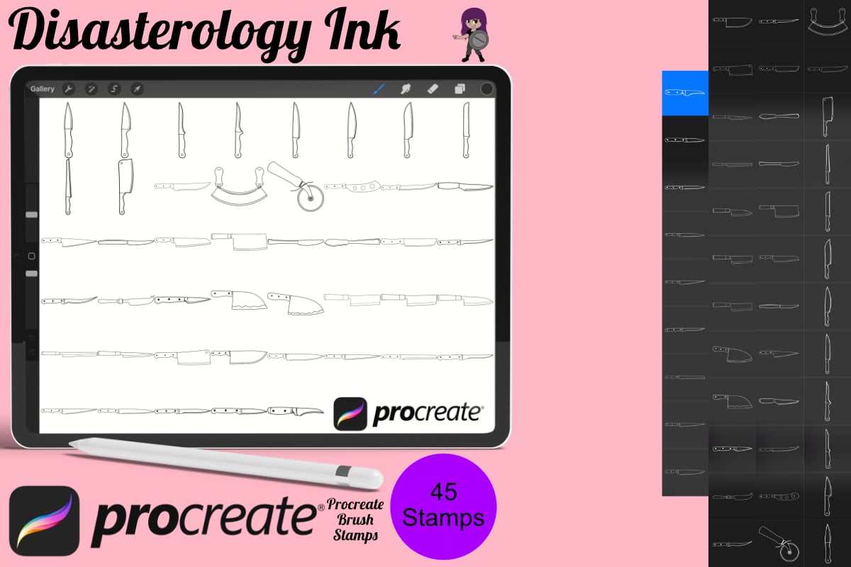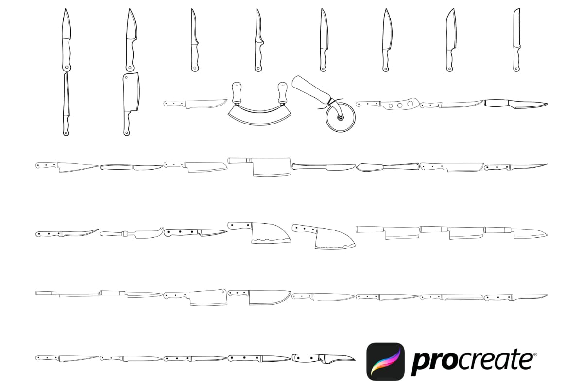 Kitchen Knife Set 1 Procreate Brush Stamps, 45 Knives