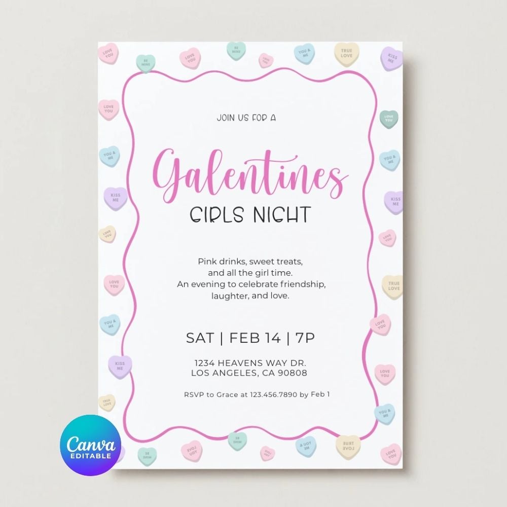 Galentine’s Day Invitation Template | Editable Canva Girls Night Invite
