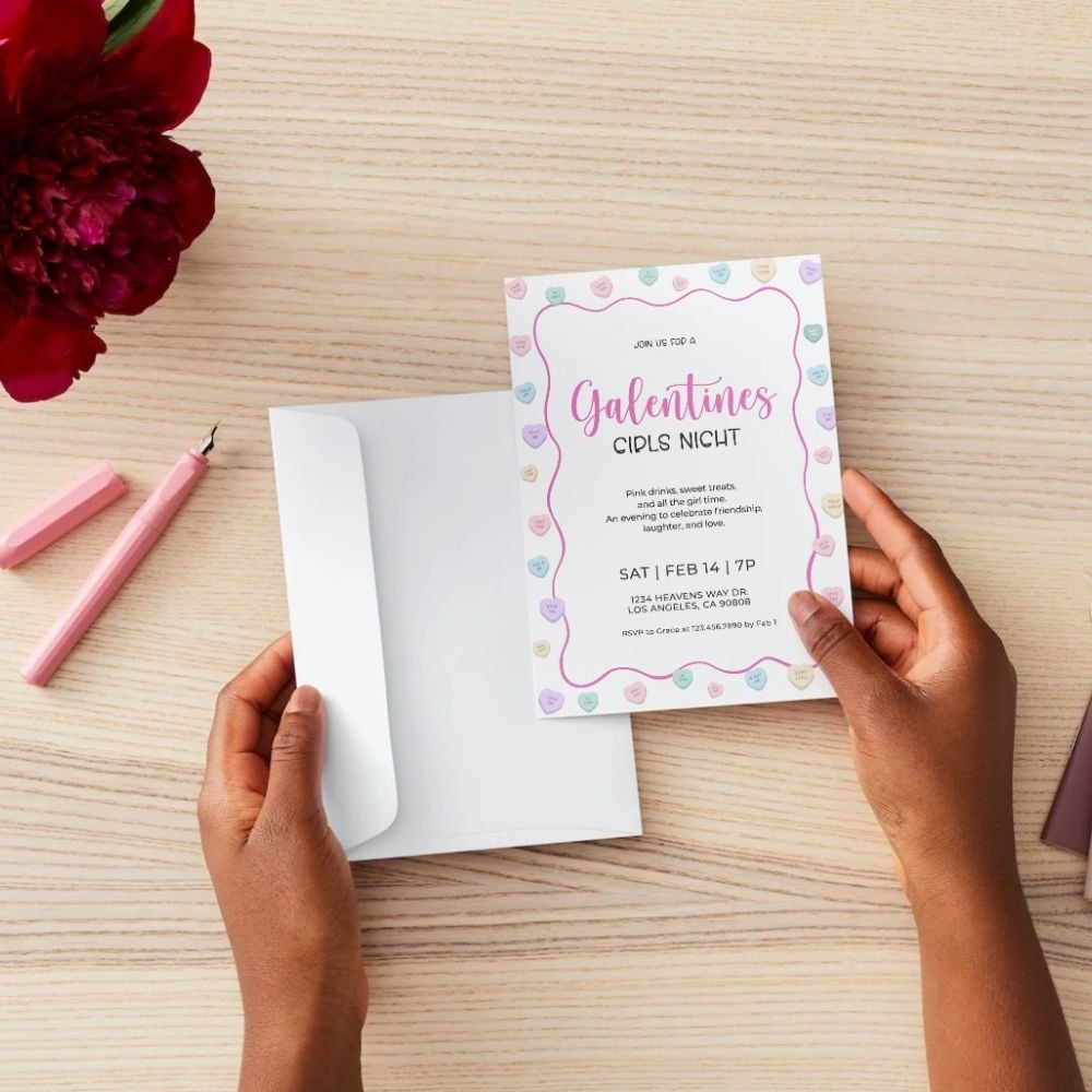 Celebrate friendship in style with this Galentine’s Day invitation template, perfect for hosting a girls’ night, Galentine’s brunch, or Valentine-inspired get-together. This invitation is fully editable in Canva, making it easy to customize in minutes—no design experience required.