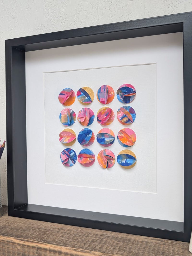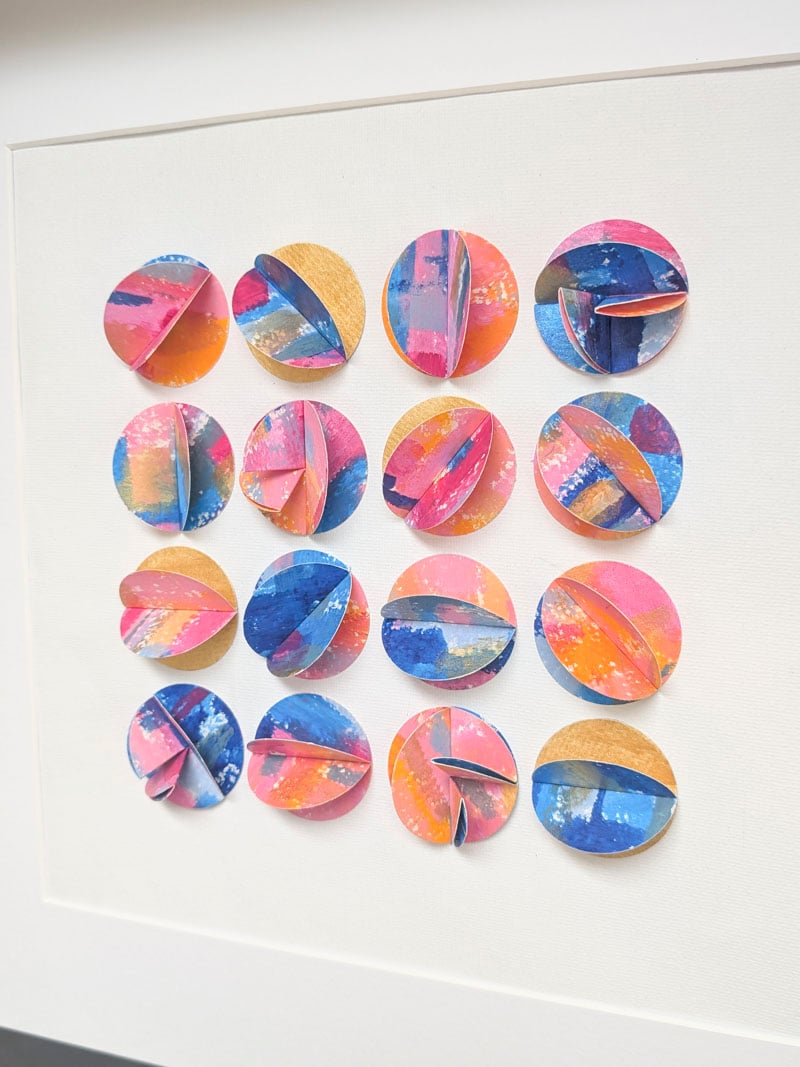 Folded colour circles - acrylic & card (framed 37 x 37cm)