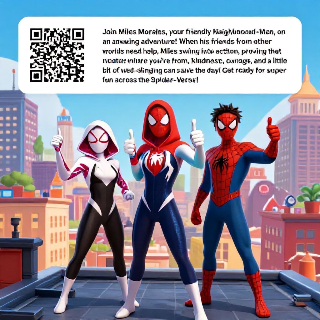 Get ready to swing, zip, and zap into the most colorful adventure ever! Miles Morales is your friendly neighborhood Spider-Man, but today, his neighborhood just got a whole lot bigger. When a shimmering, rainbow portal opens in his room, Miles is whisked away on a mission to save every world in the Spider-Verse!