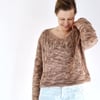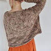 After reaching the desired width of the top, the sides are joined as you go. The sleeves are worked top down with decreases placed along each sleeve creating a gentle taper to the cuff.