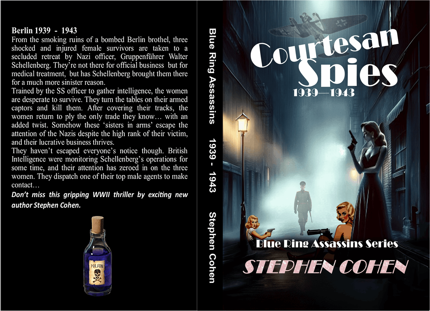 Berlin 1939 - 1943 From the smoking ruins of a bombed Berlin brothel, three shocked and injured female survivors are taken to a secluded training facility by Nazi officer, Gruppenführer Walter Schellenberg. They’re not there for official business but for medical treatment. Trained by the SS officer in all aspects of espionage, the women are desperate to survive. They turn the tables on their armed captors and kill them. After covering their tracks, the women return to ply the only trade they know… with an added twist. Somehow these ‘sisters in arms’ escape the attention of the Nazis, despite the high rank of their victims, and their lucrative business thrives. They haven’t escaped everyone’s notice though. British Intelligence were monitoring Schellenberg’s operations for some time, and their attention has zeroed in on the three women. They dispatch one of their top male agents to make contact…
