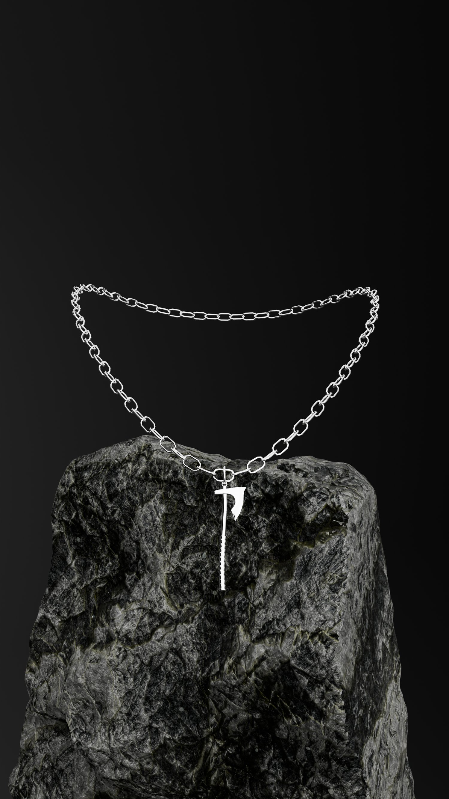 This is a piece for those who understand that love can be brutal, that closeness can cut, and that some bonds are carved not with softness, but with impact. The axe hangs at the sternum, centered like a vow you can’t outrun. Not a token of harm, but of the one moment that changes everything.