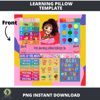 Black Girl Magic Editable Learning Pillow Template | Toddler Educational Tool 1-3 Years | Two-Sided Design | Customizable Size | Digital PNG Download