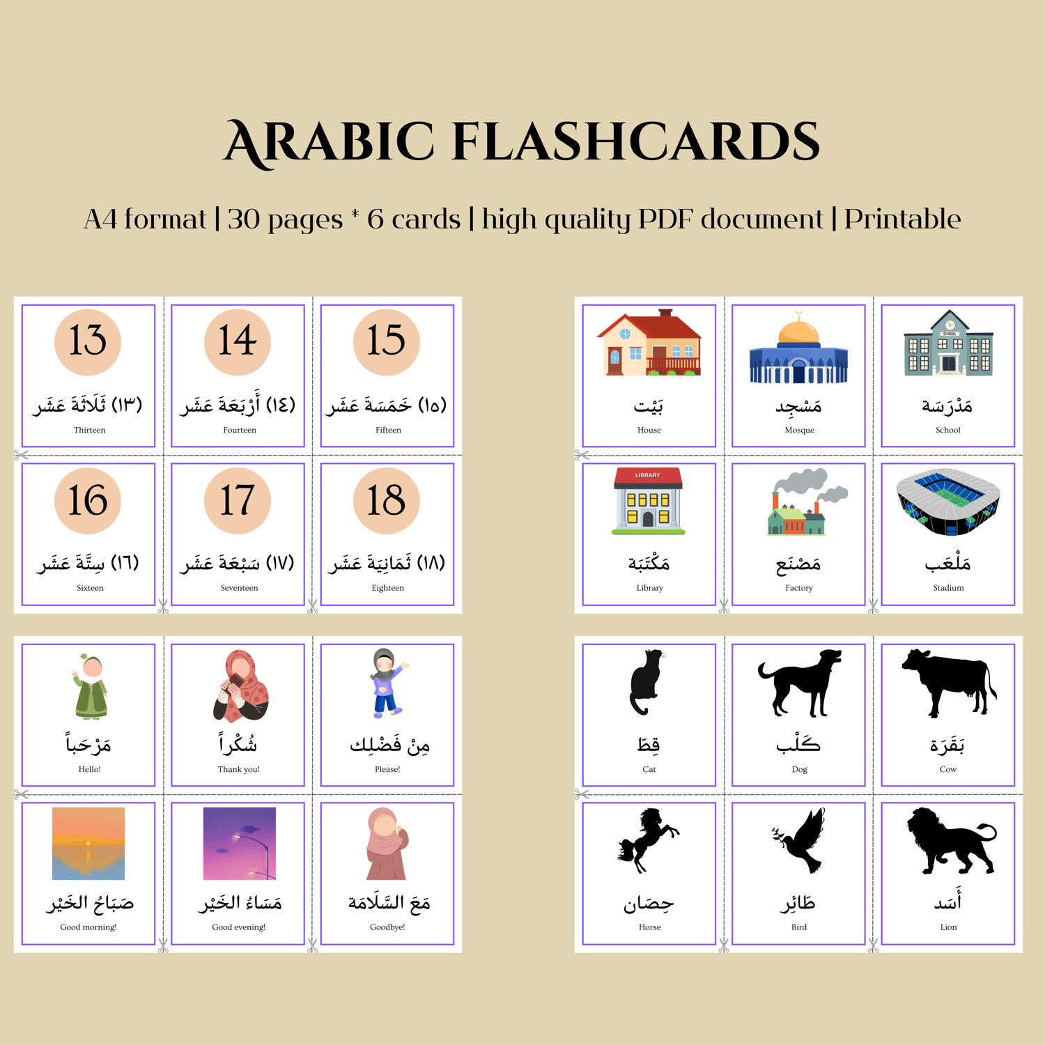 Embark on a captivating journey into the richness of the Arabic language with my meticulously crafted flashcards. Whether you're a novice or seeking to enhance your linguistic skills, these flashcards are your perfect companion to initiate the enchanting voyage of learning Arabic.
