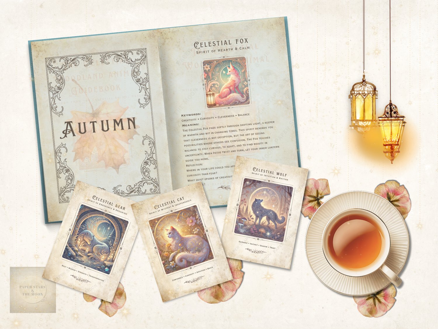 ✨ Now includes an A4 printable sheet featuring all 12 Celestial Woodland Animal Cards with cutlines — perfect for printing and cutting out at home.