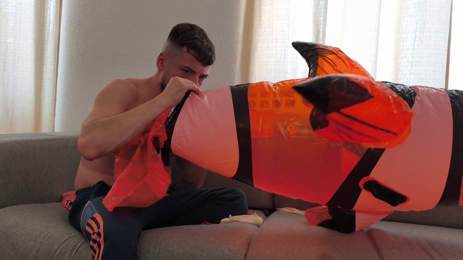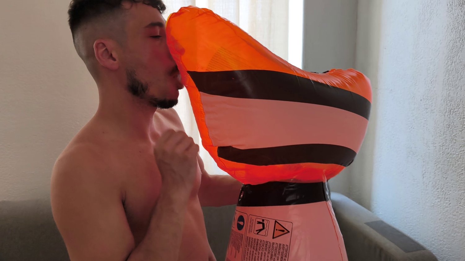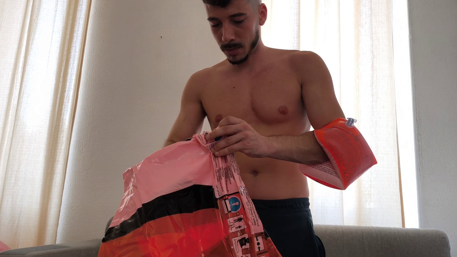 In this video Kyllan start by inflating an armband and put it on his arm.