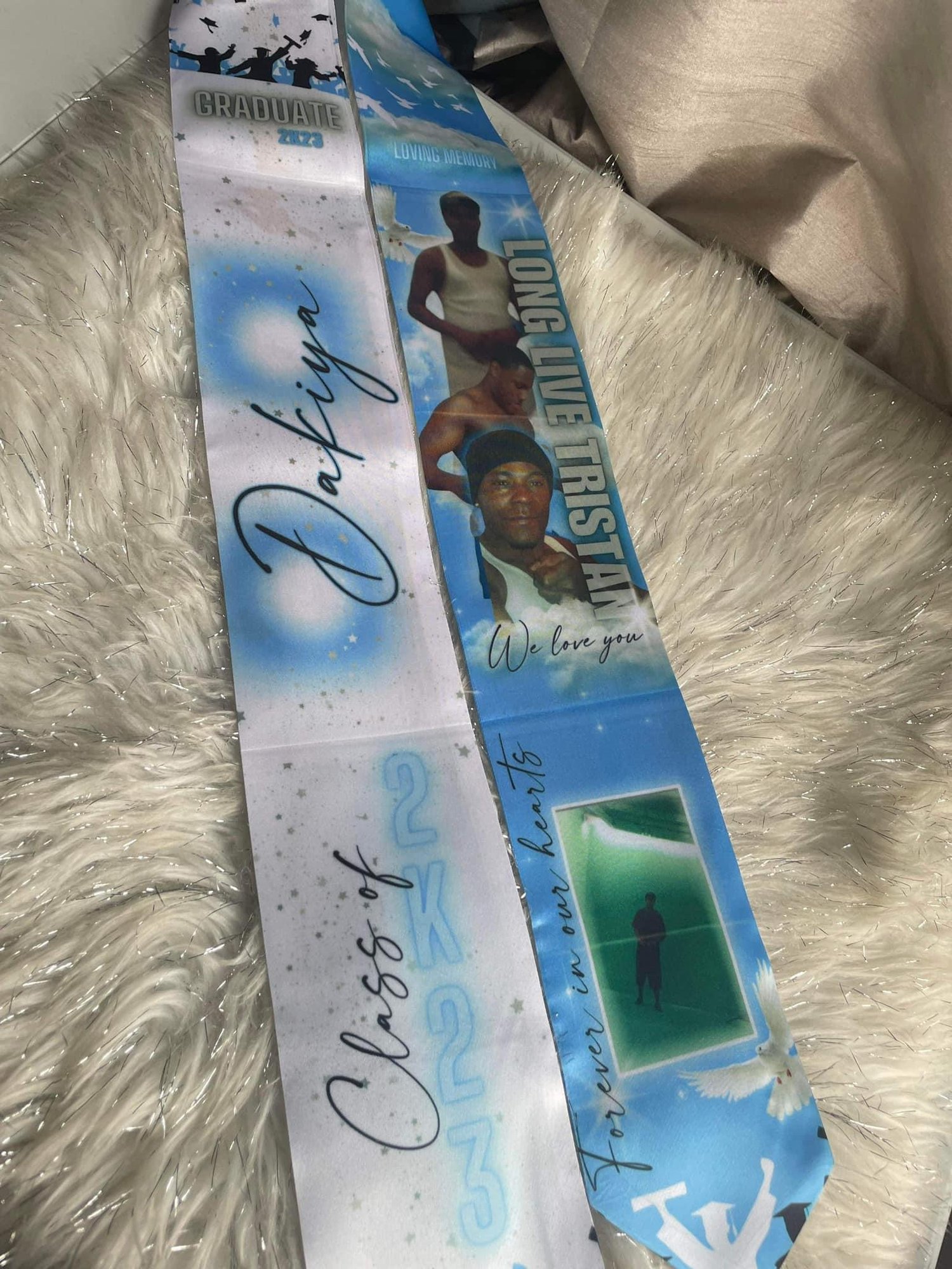 Customized graduation/memorial stoles.