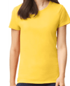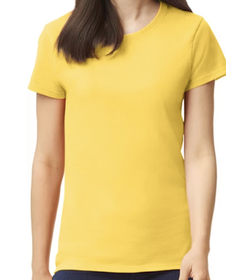 The Gildan Ladies' T-Shirt blends style with durability. Crafted from 100% preshrunk cotton and variations of poly-cotton, the shirt is optimal for custom designs. It features a feminine fit, cap sleeves, and double-needle stitching for added resilience.