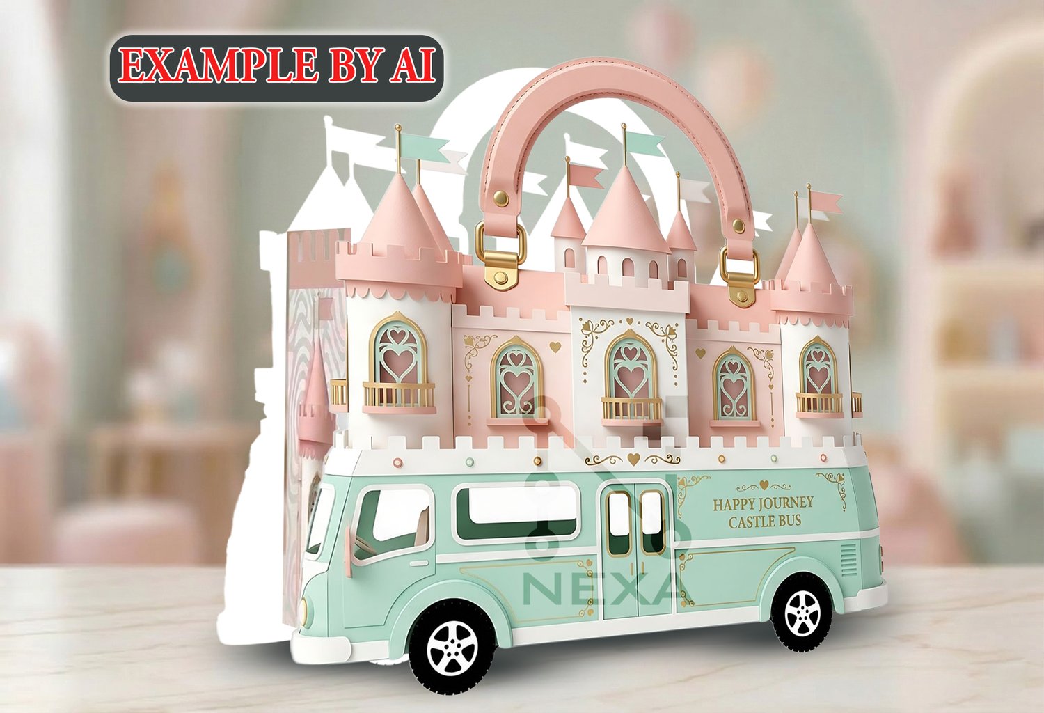 Princess Castle Bus Gift Box Template, 13x19 Large Purse Box SVG, Printable Party Favor Bag, DIY Paper Craft Template Download