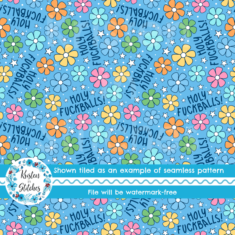 Holy Fuckballs Sweary Floral Seamless Pattern, Pretty Profanities