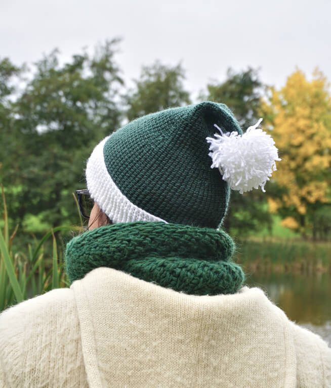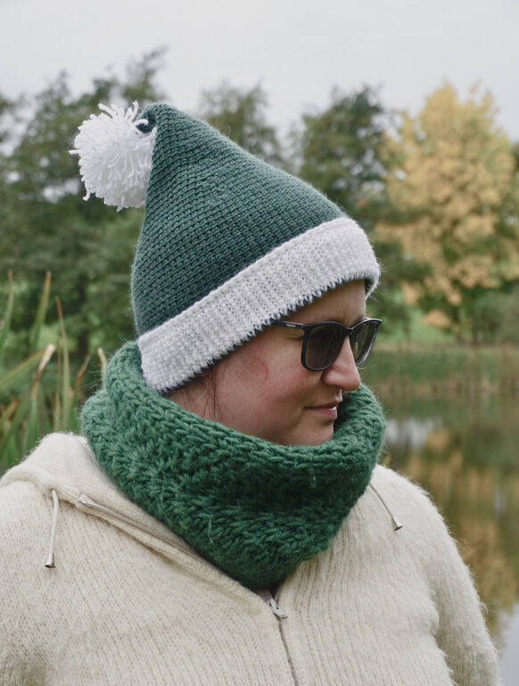 - Hook: Tunisian crochet hook with cable or straight, 5 mm or hook size that gets you gauge; 3.5 mm regular crochet hook for binding off and ties;