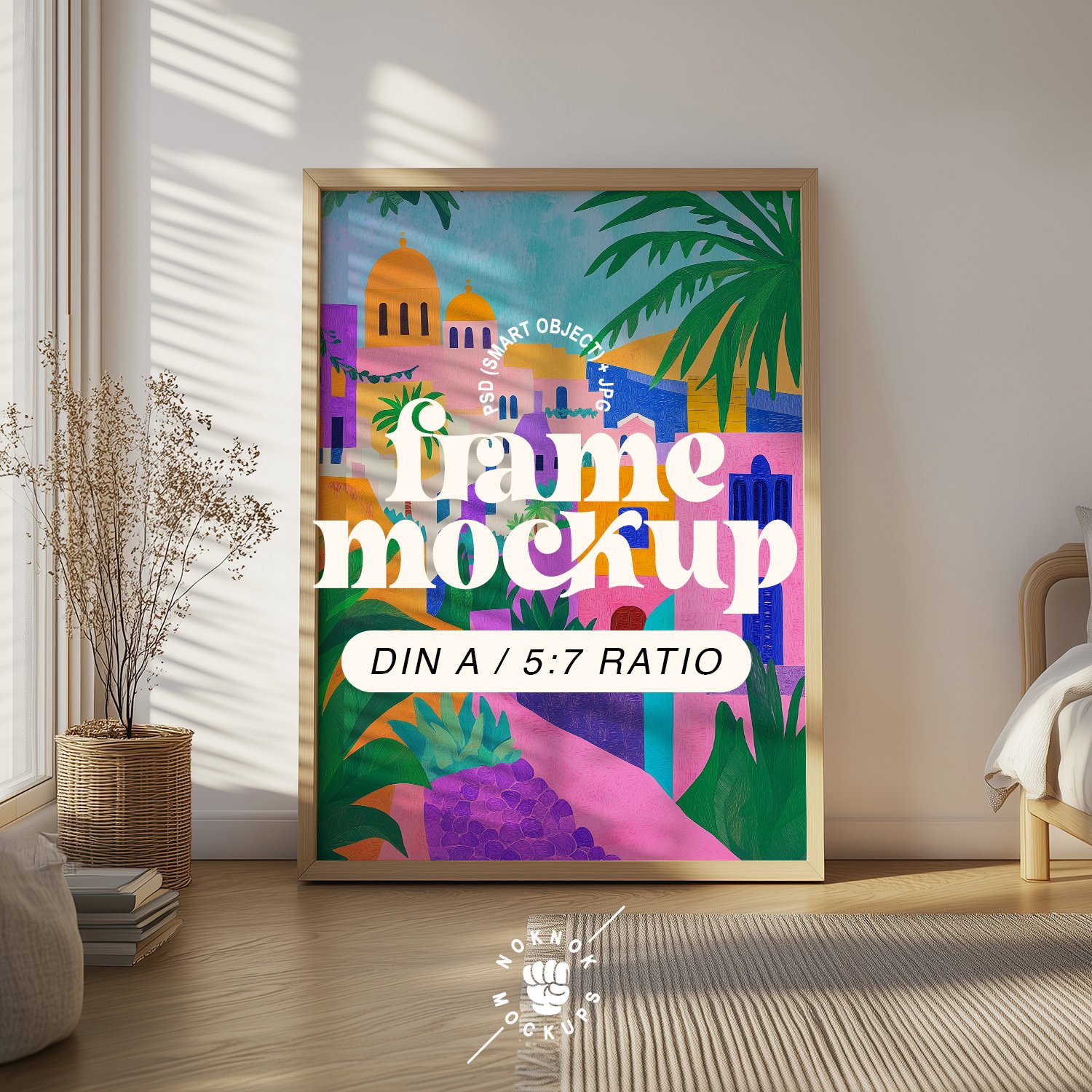 DIN A Vertical Frame Mockup, Bedroom Frame Mockup, 5:7 Ratio Frame Mockup, PSD with Smart Object + JPG