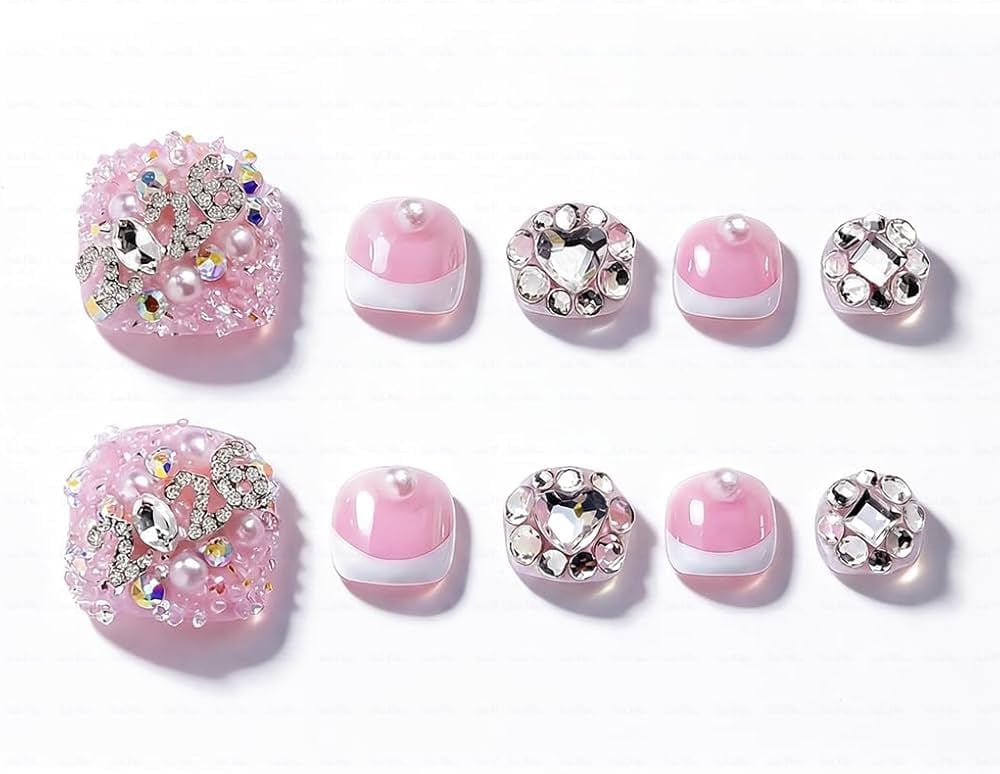 Luxury Pink Bling Press-On Toe Nails 💖✨
