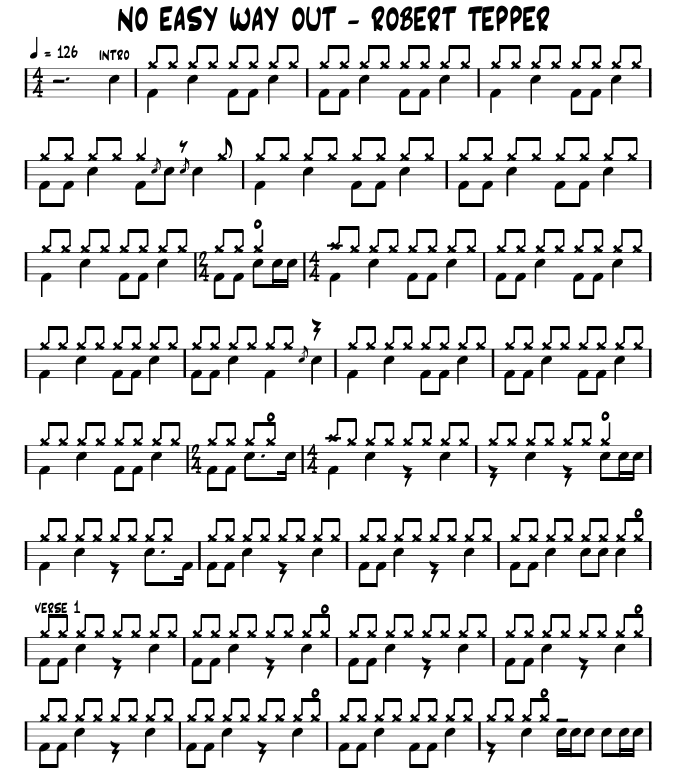 No Easy Way Out - Robert Tepper Full Drum Transcription in PDF