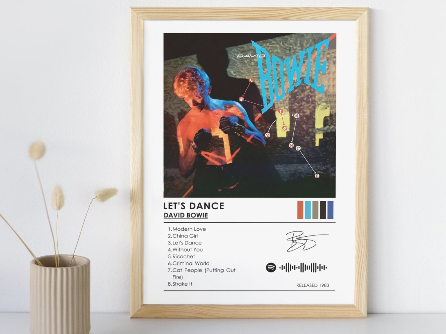 This David Bowie – Let’s Dance printable poster also makes a fantastic gift for Bowie fans, collectors of classic album art, or anyone who loves music-inspired home décor.