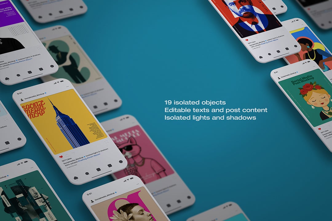 • 9 isolated mockups (1 phone, 8 portrait posts)