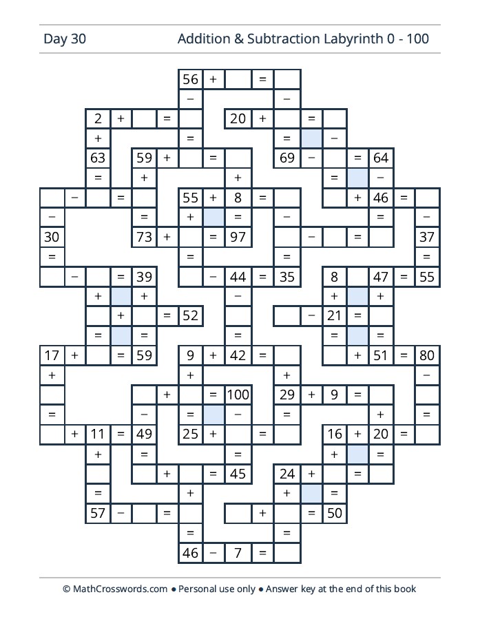 - 30 addition & subtraction crosswords: