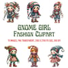This digital product includes 70 images of Gnome Girl Fashion Clipart in PNG Transparent format, 300 dpi, 2160 x 2700 px size.