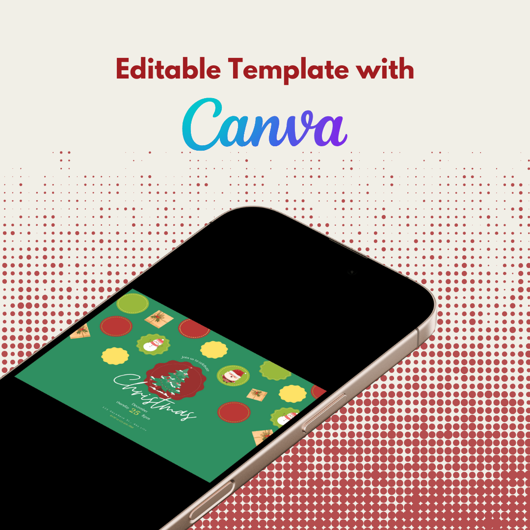 Featuring festive colors, adorable illustrations like Santa, snowmen, and gifts, plus a decorated tree, it’s ideal for any holiday party. Fully editable in Canva, you can easily customize details to match your event.