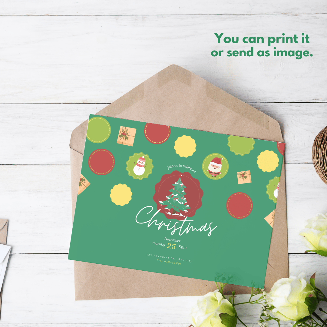 Create the perfect invite with this cute Christmas invitation card!
