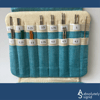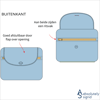 Aan de buitenkant twee grote vakken met rits voor rondbrei-kabels, aan de binnenkant één kant met ruimte voor verwisselbare breipunten en één kant met een doorzichtig opbergvak voor een schaartje, eindstops, steekmarkeerders etc.