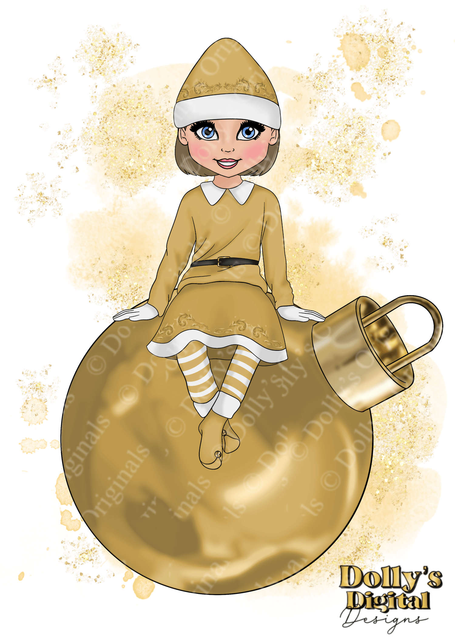 Instant digital download of our Gold Cheeky Elf Girl Sitting Bundle PNG (24 PNG’s)