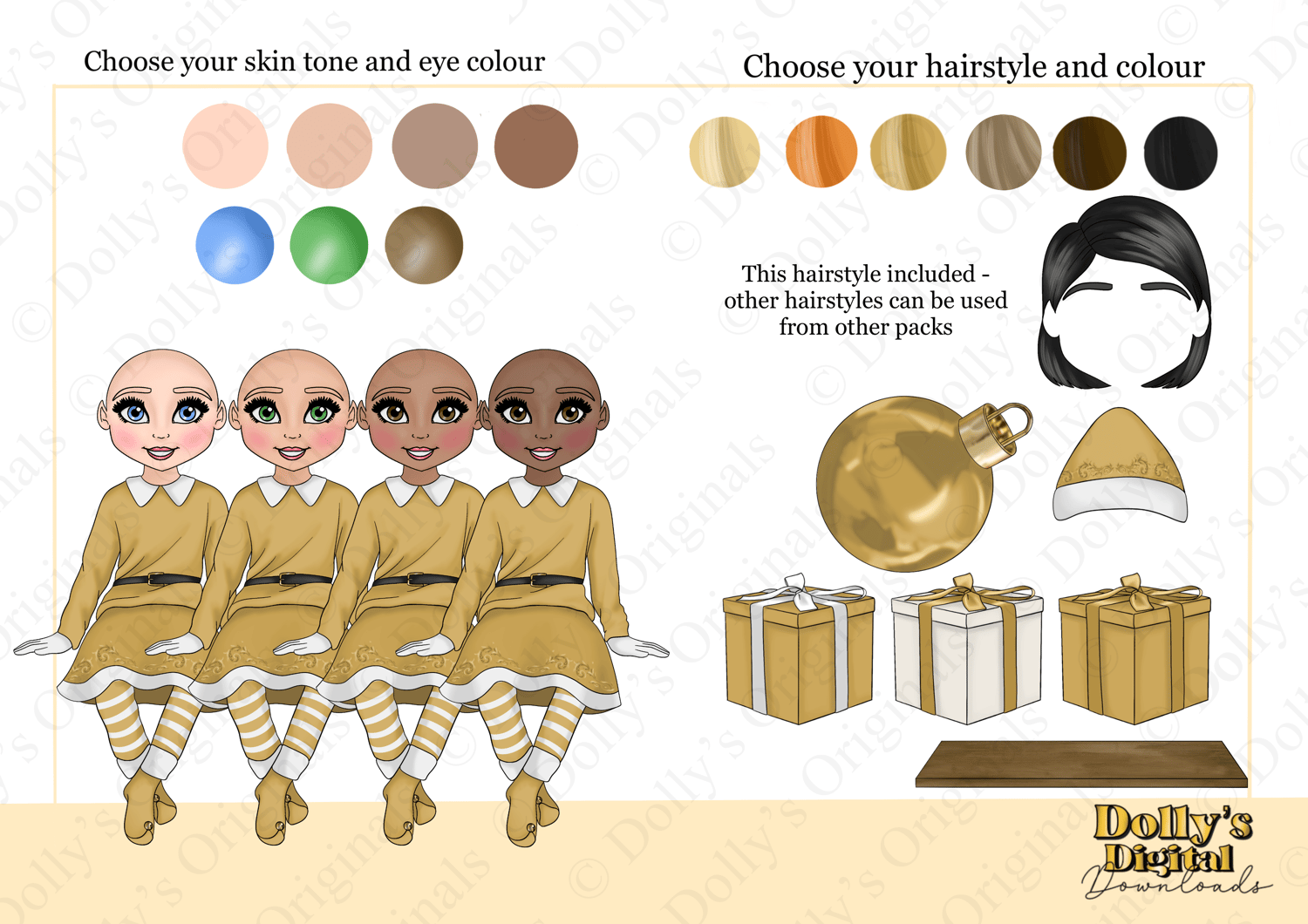 1 Hairstyle included, hairstyles from other packs can also be used.